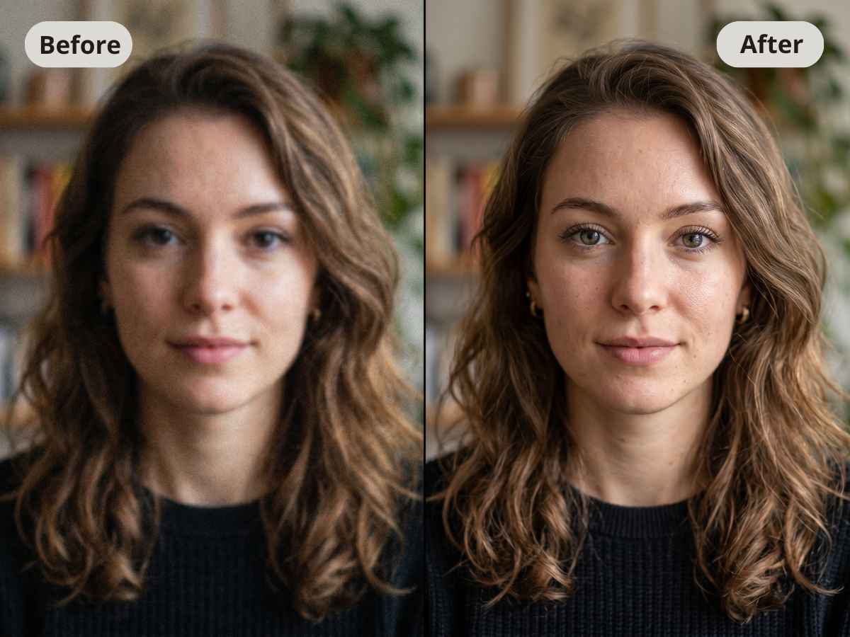 Our advanced face enhancement algorithm fixes blurry facial features and smooths skin textures while maintaining 100% natural looks. It intelligently restores eyes, hair, and lip details to create professional-grade portraits from low-quality captures.
