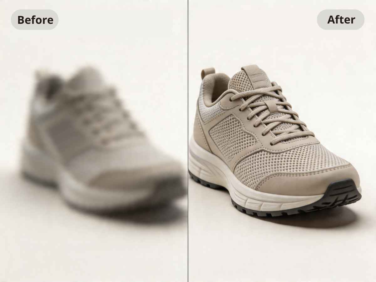 Use our image quality enhancer to sharpen product details and remove blur, helping you boost conversion rates by up to 40% with professional visuals.