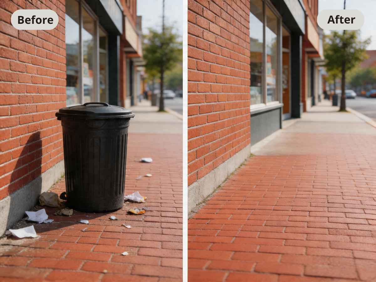 Transform messy street photography by erasing unsightful garbage cans, litter, and visual clutter. The AI remove object from photo feature fills in the missing gaps with matching brickwork and sidewalk patterns, restoring the aesthetic appeal of the urban environment. For older damaged urban photos, our photo restoration tool can bring them fully back to life.